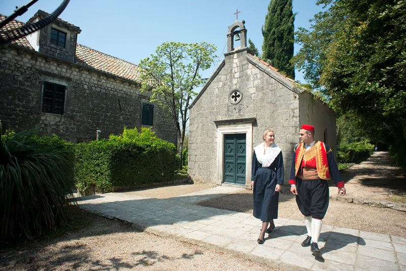 Južno od ljetnikovca, na kraju šetnice je paviljon (vidikovac, glorijet). Niski, četverostrani ugaoni stupci i osmerostrani stupovi nose četverostrešno krovište na drvenoj konstrukciji. Iz njega se pruža veličanstven pogled prema moru i Elafitskim otocima. Sjeverozapadno od ljetnikovca je pravokutna nadsvođena kapela posvećena sv. Jerolimu sagrađena u 16. stoljeću. Oltar izveden u štuku datira se u sredinu 18. stoljeća kao i štukodekoracija na bočnim zidovima.